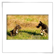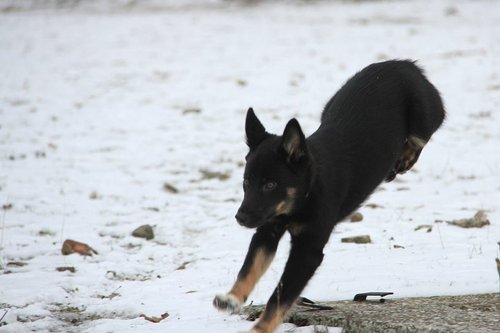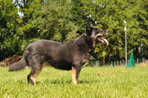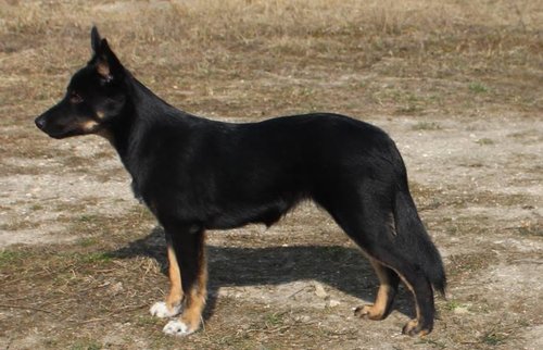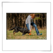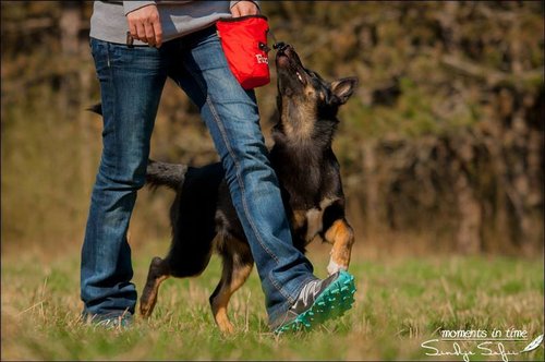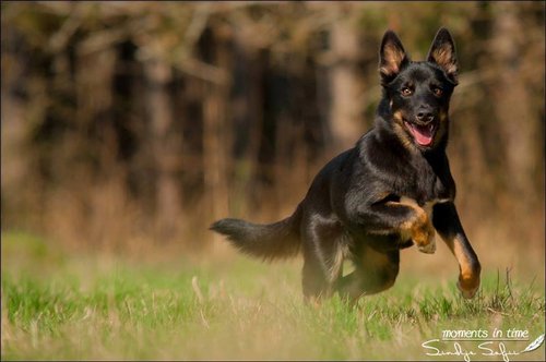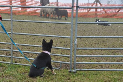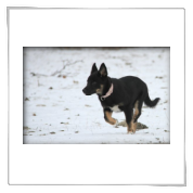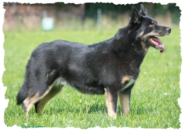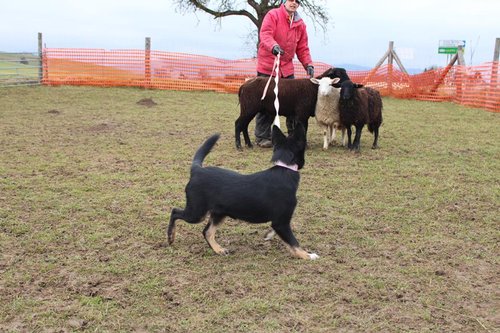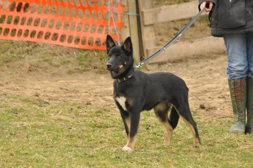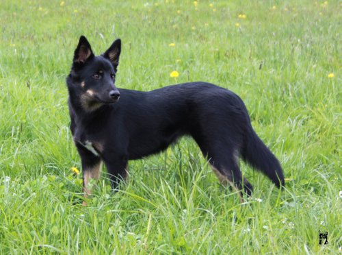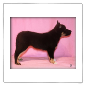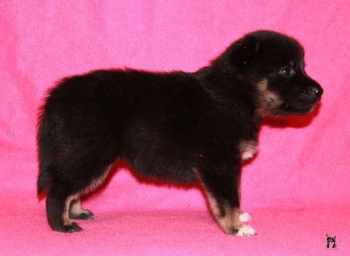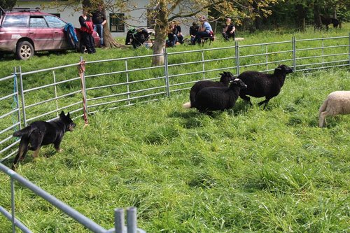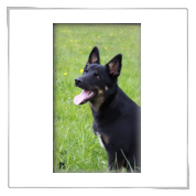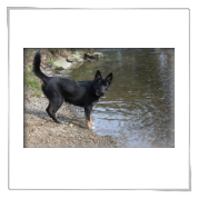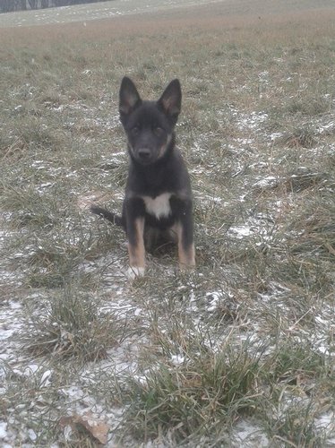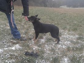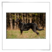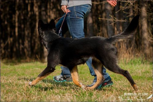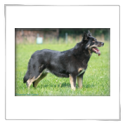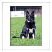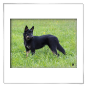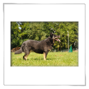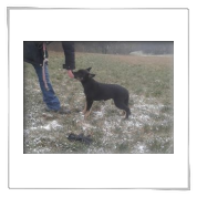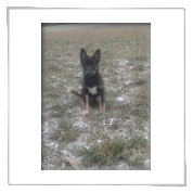 11 mon alt, gute größe und Format, kräftiges Scherengebiss, mittelbr. Auge, gut gestellte Ohren, fester Rücken, g. genn. Mell? HH, gute Brusttiefe i.d. Bewegung hinten etwa eng, vorne noch nicht ganz fest, guter Schwung