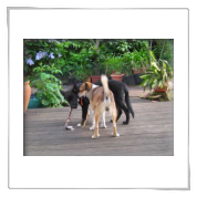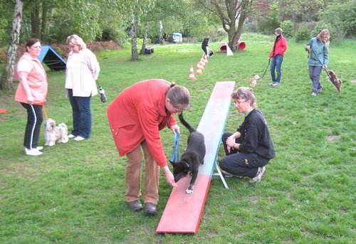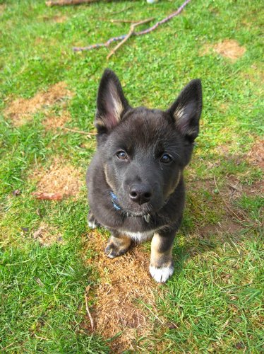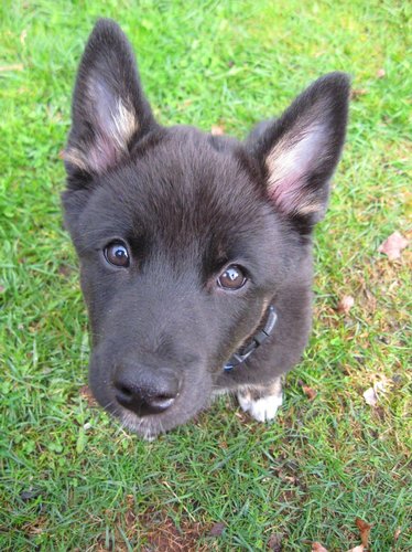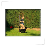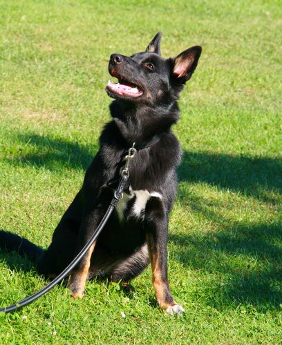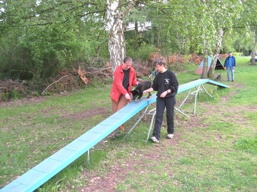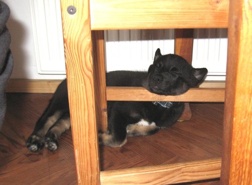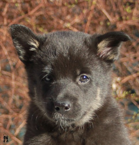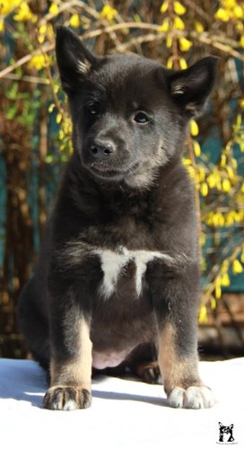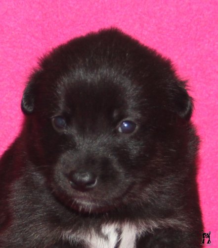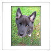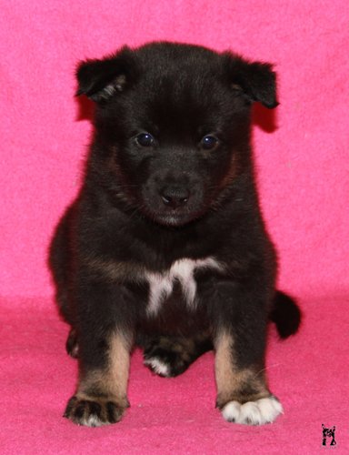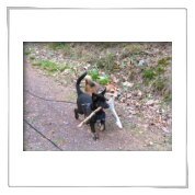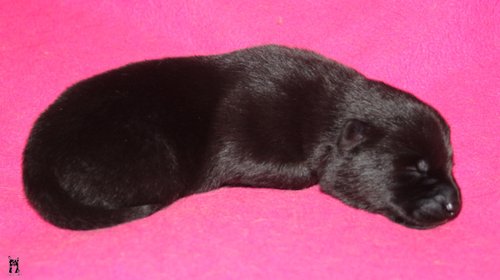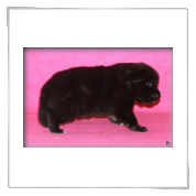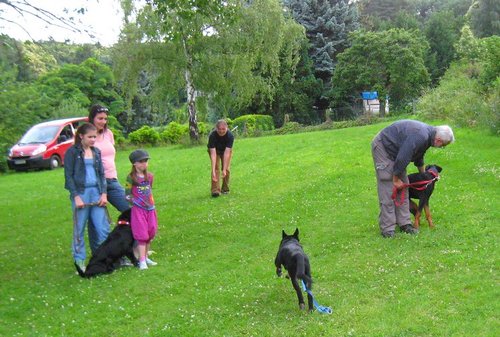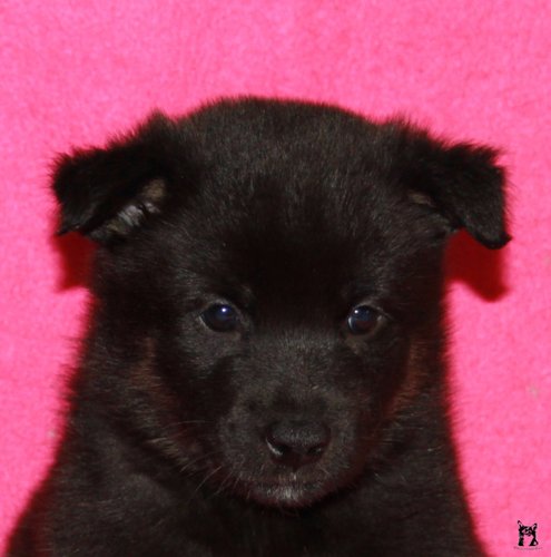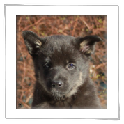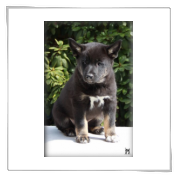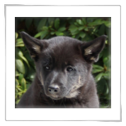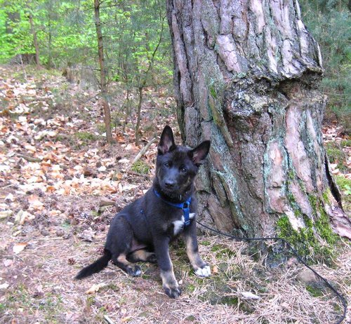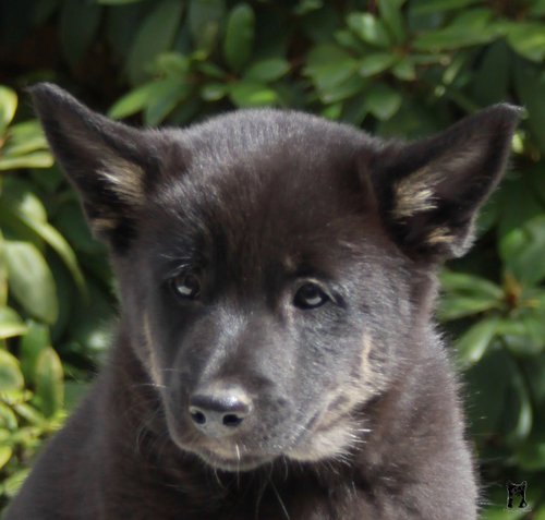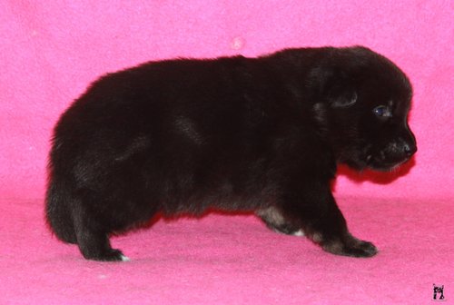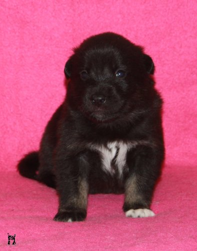 Insgesamt etwas feine Hündin, mit schmalem Kopf, Korrekte Oberlinie, Rute wird deutlich hoch geschwungen, korrekte Winkelung, in der Bewegung fehlt noch Harmonie, etwas vorsichtig aber freundlich